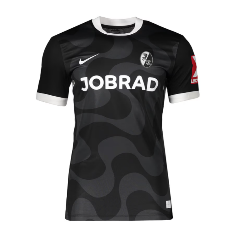 Bereit für starke Auftritte in anderen Stadien: Das SC Freiburg Auswärtstrikot 2025/26 von Nike kombiniert elegantes Design mit sportlicher Performance. Mit seinem dynamischen und weichen Wellenmuster in Anthrazit und Schwarz, die sich harmonisch über das gesamte Trikot ziehen, vermittelt das Design Modernität und Eleganz auf dem und neben dem Platz.